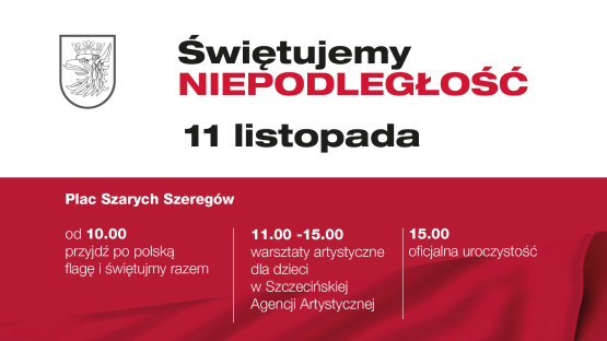 Z kolei miasto 11 listopada zaprasza na pl. Szarych Szeregów. Będzie można tu przyjść już od godz. 10:00 i spotkać się z Hallerczykami, obejrzeć wystawę „Droga do Niepodległości” czy występ Zespołu Pieśni i Tańca Ziemi Szczecińskiej „Krąg”, który będzie okazją do wspólnego śpiewania pieśni patriotycznych. O godzinie 15:00 rozpocznie się oficjalna uroczystość przy popiersiu Marszałka Józefa Piłsudskiego. Dzieci zaproszone są w szczególności do siedziby Szczecińskiej Agencji Artystycznej (al. Wojska Polskiego 64) na warsztaty artystyczne. Na maluchów czeka m.in. własnoręczne wykonywanie wąsów Marszałka Piłsudskiego, tworzenie polskiego godła z wydzieranek czy orła z papieru w formie przestrzennej. (Aby wziąć udział w warsztatach, należy wysłać swojego zgłoszenie do 10 listopada do godz. 14:00 na adres: sekretariat@saa.pl lub zadzwonić pod nr: 91 43 195 71. Zapisy prowadzone są na poszczególne godziny: 11.00, 12.00, 13.00 i 14.00. Warsztaty skierowane są dla dzieci od 6 r.ż.) 10.00 - 16.30 - przyjdź po polską flagę i świętujmy razem