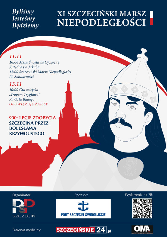 Z pl. Solidarności 11 listopada wyruszy XI Szczeciński Marsz Niepodległości organizowany przez Porozumienie Środowisk Patriotycznych. W południe zostanie odśpiewany hymn narodowy, który rozpocznie marsz. Uczestnicy przejdą ulicami: pl. Solidarności (rozpoczęcie) – Małopolską – Matejki – pl. Żołnierza Polskiego – al. Niepodległości – Bramę Portową – Krzywoustego – al. Piastów – pl. Szarych Szeregów (zakończenie).