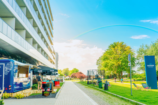 Wielbicielom street food’owego jedzenia polecam spróbować autorskiego menu z food trucka On-The-Wave. Burger w kilku odsłonach potrafi nieźle namieszać i zaburzyć nasze pojęcie o bułce z mięsem. Dla dzieci znajdzie się też klasyk z frytkami. Wakacje w Kołobrzegu to także babki z piasku, leżak targany pod pachą i zdecydowanie za ciężka torba z napojami. Nie znam nikogo, kto lubi nosić ze sobą plażowy ekwipunek przez połowę miasta, dlatego preferuję hotele przy plaży. Brzmi ekskluzywnie i trochę południowo? Możliwe, ale Seaside Park Hotel znajduje się 20 m od plaży, więc przepuklina nam nie grozi. Przy takich odległościach zawsze możemy pójść do pokoju dwa razy. W razie niepogody do dyspozycji gości jest pełnowymiarowy sportowy 25 m basen i mniejszy brodzik dla najmłodszych. W suchej saunie organizowane są nocne seanse saunowe prowadzone przez saunamistrza. To ciekawa alternatywa dla osób, które lubią saunować i dla tych którzy chcieliby spróbować. Wieczorami polecam koncerty na świeżym powietrzu lub w Hotelowym Atrium.