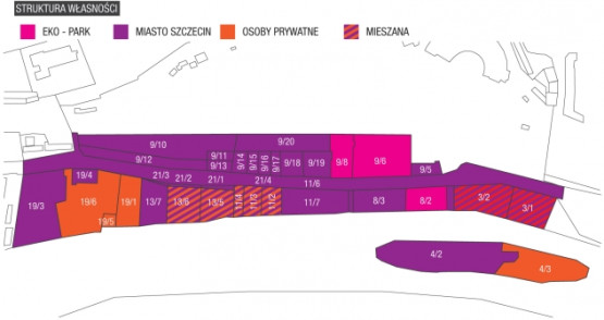 Podział własnościowy jest dosyć skomplikowany. Najbardziej wartościowe obiekty postindustrialne przy ul. Kolumba należą do spółki Eko-Park (fabryka Lefevera oraz była fabryka likieru Ruckfortha). Budynki po dawne zajezdni tramwajowej zajmuje Szczeciński Inkubator Przedsiębiorczości Większa część Wyspy Jaskółczej należy do miasta. Wprowadzenie projektu w życie stanowiłoby wyzwanie dla włodarzy, inwestorów i osób zarządzających taką instytucją kultury. Kto wie, może moglibyśmy liczyć na „efekt Bilbao”… - tłumaczy pomysłodawca koncepcji.