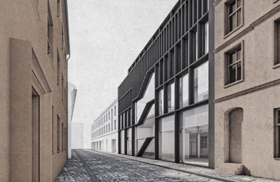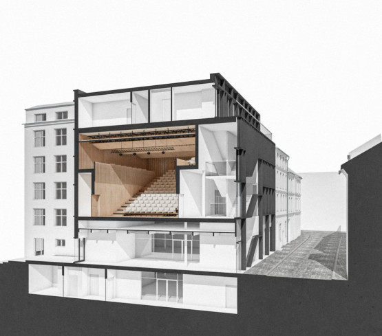 Uczelnia zajmuje już w tym kwartale Pałac pod Globusem i Pałac Joński. Teraz zyska dodatkową przestrzeń do organizacji działań artystycznych i edukacyjnych. Miejscem ich realizacji ma być „plomba”, która wypełni lukę między zabudową przy pl. Orła Białego 1 i ul. Łaziebną 1.