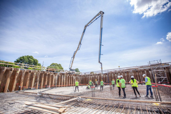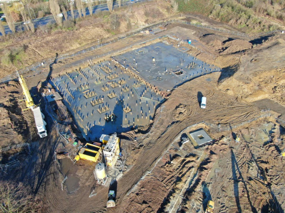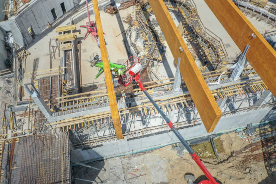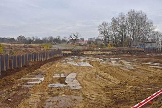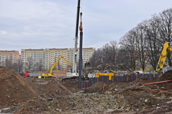 Końcówka 2019 roku i pierwsze tygodnie 2020 roku to przekazanie placu budowy, rozpoczęcie prac naziemnych, palowanie gruntu, montaż ścianek szczelnych. Te wszystkie prace miały przygotować teren pod budowę dwóch ogromnych budynków.
