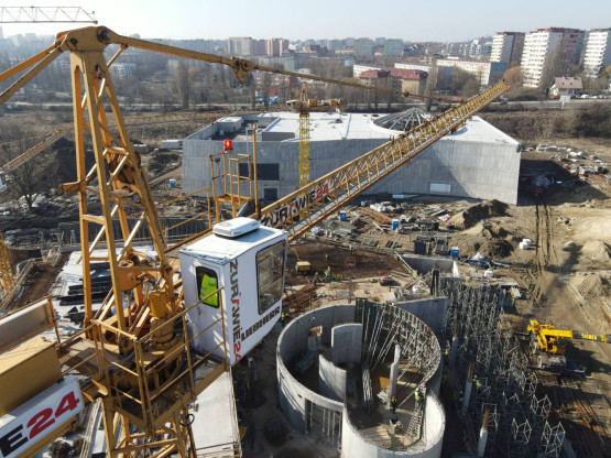 W okresie wiosenno-letnim gotowe były płyty fundamentowe, a oba budynki zaczęły piąć się w górę. – Wtedy też odbyło się wmurowanie kamienia węgielnego – przypomina Piotr Zieliński. – Przez kolejne tygodnie konstrukcja żelbetowa budynków rozrastała się w każdym kierunku.