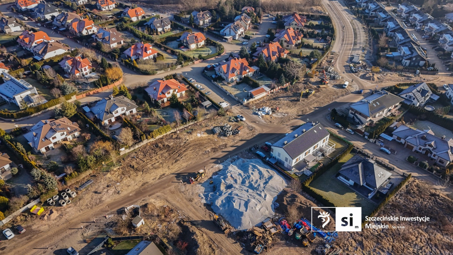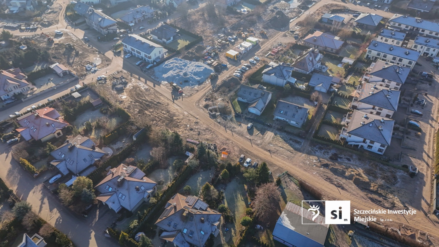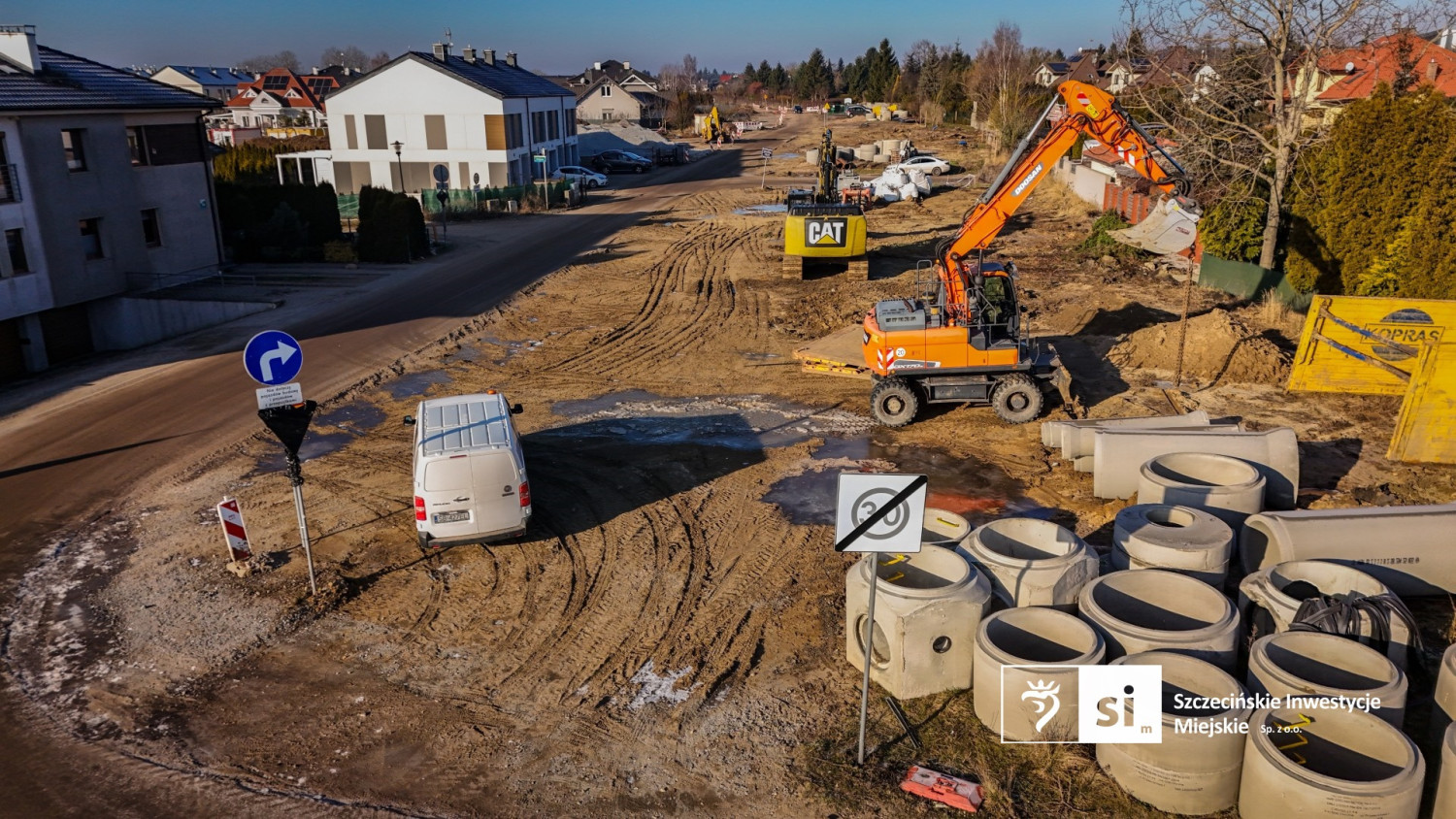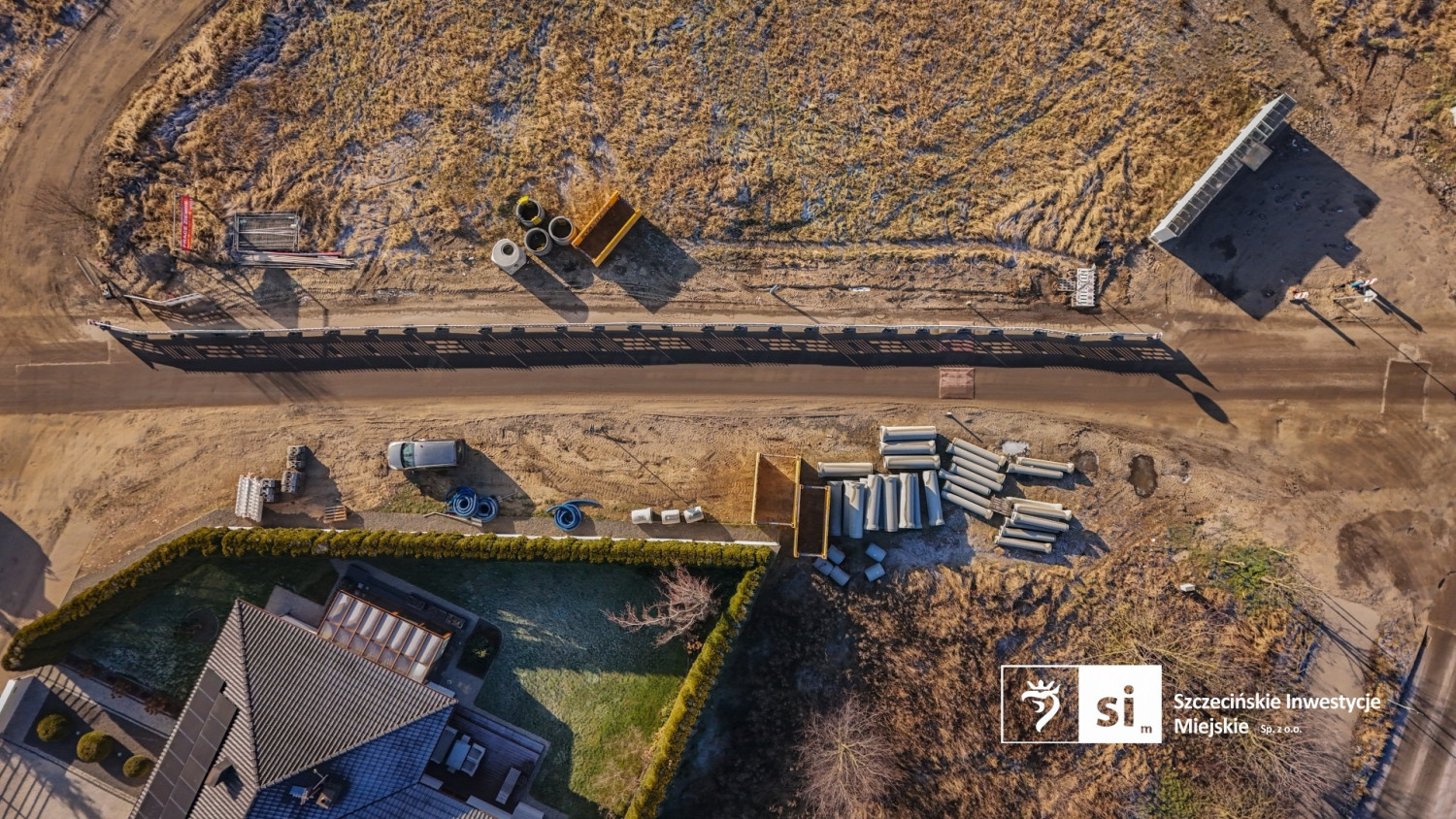 Na zdjęciach z góry, które udostępniła spółka Szczecińskie Inwestycje Miejskie, widać, że prace „nie wyszły” jeszcze z ziemi. Na razie powstają kanalizacja deszczowa i kanał technologiczny, w którym poprowadzone zostaną niezbędne instalacje.