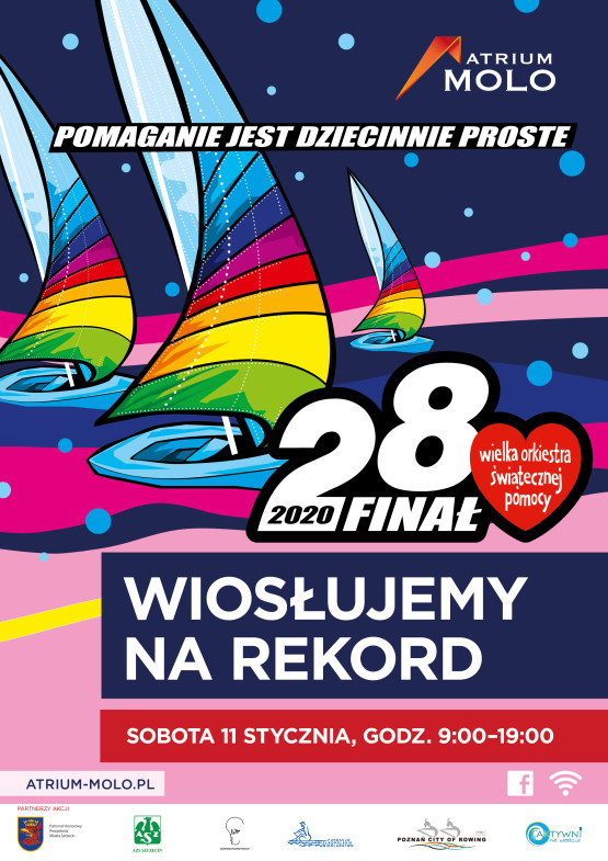 W tym roku wiosłowanie dla WOŚP odbędzie się we wszystkich miastach 11 stycznia. Tego dnia klienci odwiedzający Atrium Molo będą mogli spróbować swoich sił w wiosłowaniu na ergometrze wioślarskim. Celem tej inicjatywy jest ustanowienie próby rekordu Polski w największej liczbie osób z tych ośmiu miast, które w ciągu 10 godzin przepłyną na jednym ergometrze wioślarskim dystans 500 metrów. Każdy ze śmiałków uczestniczący w próbie bicia rekordu otrzyma wyjątkowy certyfikat.