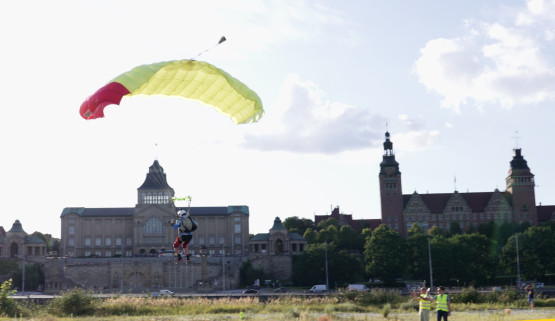Spadochroniarze z grupy „Lecim na Szczecin” zorganizowali skok na Wyspę Grodzką w Szczecinie. Plażowicze byli zaskoczeni, bo to rz...