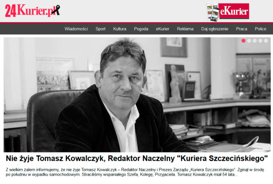Nie żyje redaktor naczelny "Kuriera Szczecińskiego" Tomasz Kowalczyk