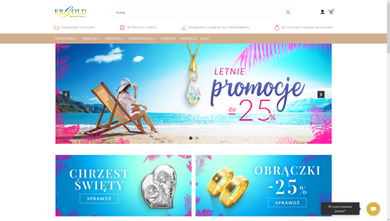 Sklep z biżuterią ze złota - bransoletki, wisiorki