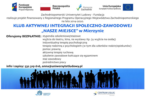 Zachodniopomorski Uniwersytet Ludowy zaprasza do wzięcia udziału w Klubie Aktywnej Integracji Społeczno-Zawodowej „Nasze Miejsce”...