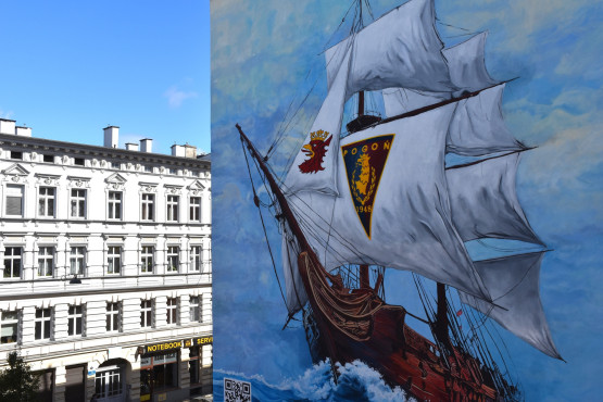 Galeon pod pełnymi żaglami pojawił się na ścianie śródmiejskiej kamienicy