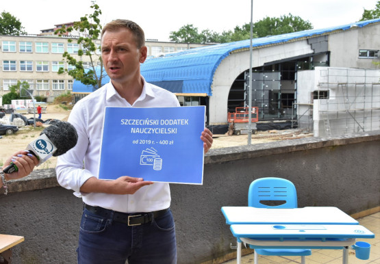 Nitras na tle budowanego od lat szkolnego basenu obiecuje podwyżki dla nauczycieli i wygodne ławki dla uczniów