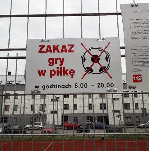 Tak przynajmniej wynikało z tabliczki, która przez chwilę wisiała na płocie boiska na osiedlu Sienno. Widniało na niej - „Zakaz gr...