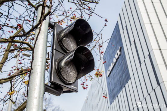 Chodzi o sygnalizację świetlną na ulicy dojazdowej do podziemnego parkingu, tuż przy narożnym wejściu do Galaxy od strony al. Wyzw...
