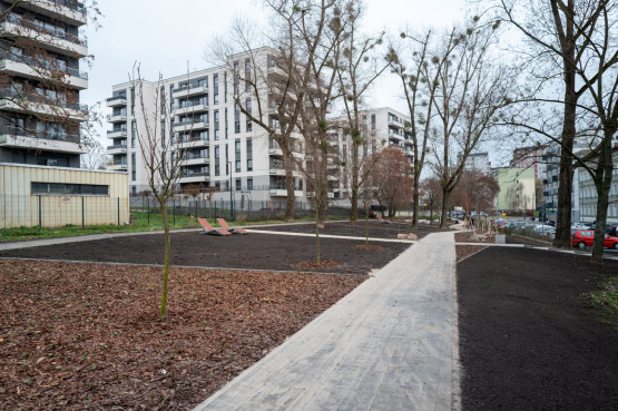 Na zielonym terenie przy ul. Dembowskiego stanęły ławki, leżaki, stoły z krzesłami i betonowe siedziska, a także pojawiły się nowe...