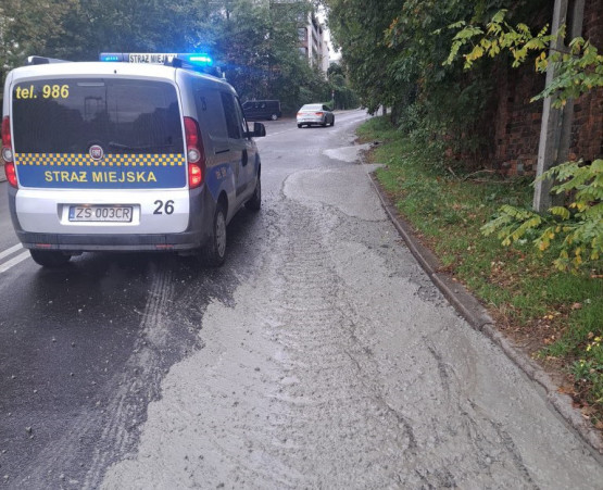 Strażnicy miejscy podjęli w środę nietypową interwencję. Patrol tzw. strażników osiedlowych ruszył śladem betonu rozlanego po ulic...