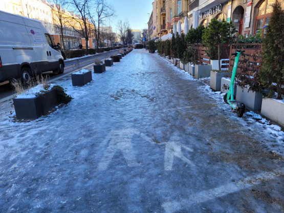 Na chodniku w al. Jana Pawła II można tańczyć na lodzie. Mieszkanka: „Nie da się przejść”