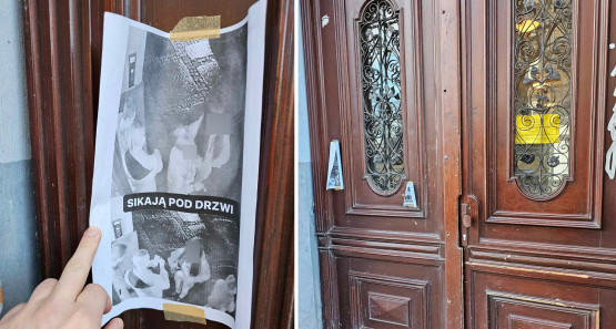 Na bramie do kamienicy przy ul. Owocowej 16 wisi wydrukowana domowo kartka z informacją „obiekt monitorowany”. Obok powieszono zdj...