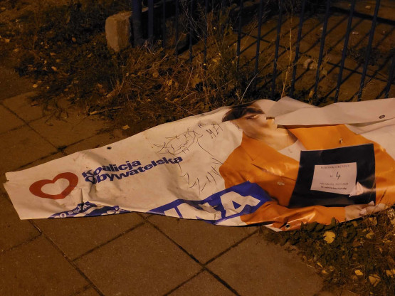 Banery wyborcze leżą na trawnikach i chodnikach. „Zdeptane i potargane”