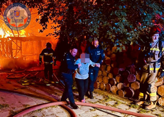 Policjanci wyprowadzili staruszkę z płonącego domu. Duży pożar w Szczecinie [foto]