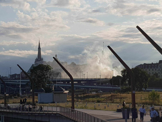 Kłęby dymu nad Trasą Zamkową