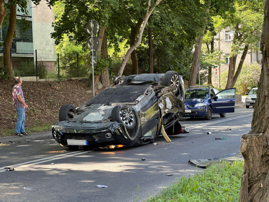 Dachowanie na Mącznej. Pijany kierowca odbił się od drzewa [foto]