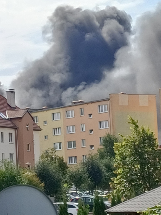 Kłęby czarnego dymu widoczne z wielu kilometrów. Pożar na budowie hali