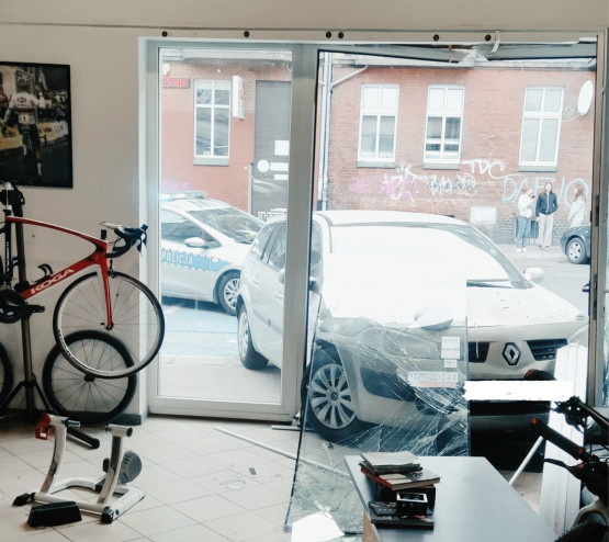 Do niecodziennego zdarzenia doszło 1 maja po południu na ul. Pocztowej w Szczecinie. W witrynę sklepu i warsztatu rowerowego Najs...