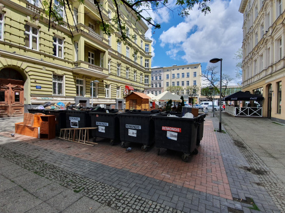 Ogródki gastronomiczne z widokiem na kontenery pełne śmieci. Restauratorzy: „Jesteśmy zszokowani”