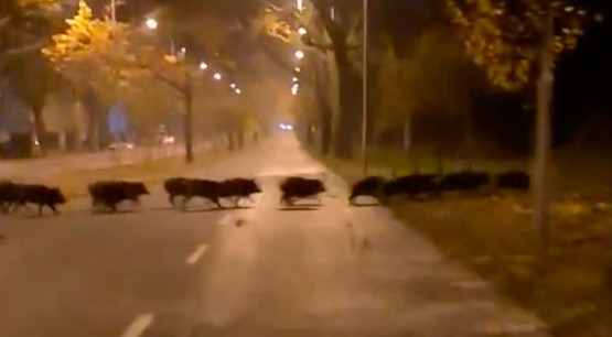 Rowerzysta nagrał dziki przebiegające przez al. Wojska Polskiego. Film robi wrażenie