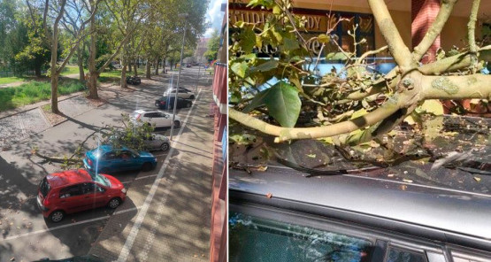 Połamane gałęzie przygniotły auta na placu Batorego. Zniszczenia są bardzo widoczne