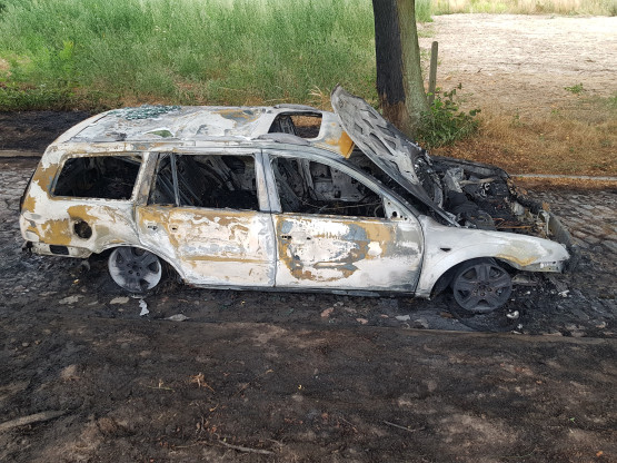 Samochód spłonął na dzikim przejeździe w Podjuchach [foto]
