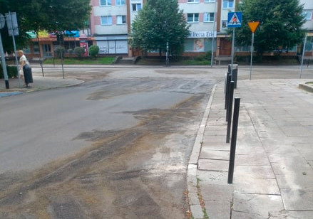 Małe rondo przy Urzędzie Miasta zostaje na stałe. Na chodniku pojawiły się słupki, by zablokować nielegalne parkowanie