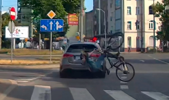 Pijany rowerzysta wjechał w samochód na pl. Kościuszki. Po zderzeniu próbował jeszcze uciekać [wideo]