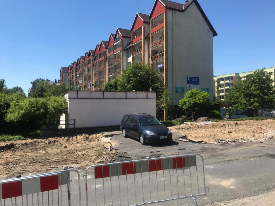 Plac budowy, a na środku betonowa wysepka, na której stoi samochód na niemieckich tablicach rejestracyjnych – taki obraz możemy zo...