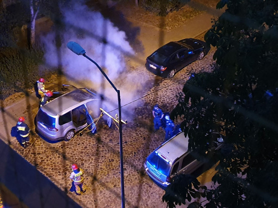Chwile grozy na ul. Druckiego-Lubeckiego. Samochód spłonął pod oknami budynku