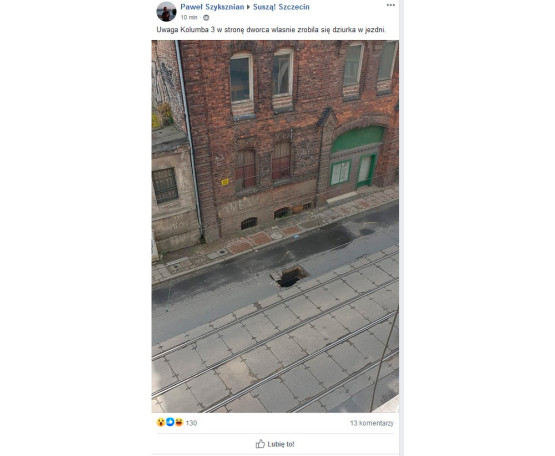 O sytuacji poinformował użytkownik grupy "Suszą! Szczecin". Na wysokości ul. Kolumba 3 w stronę Dworca Głównego zapadła...