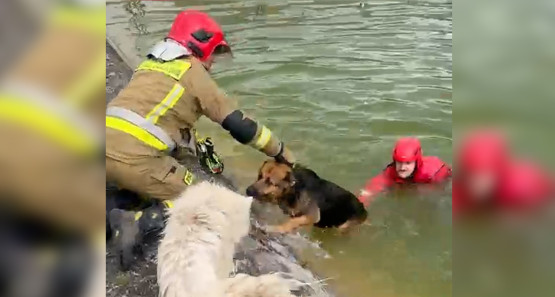 Poruszająca akcja ratownicza. Pies rzucił się na pomoc tonącemu psu