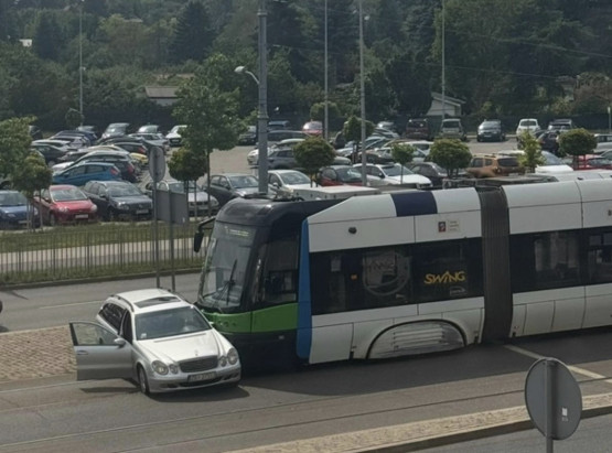 Mercedes wjechał pod tramwaj. Utrudnienia na Arkońskiej