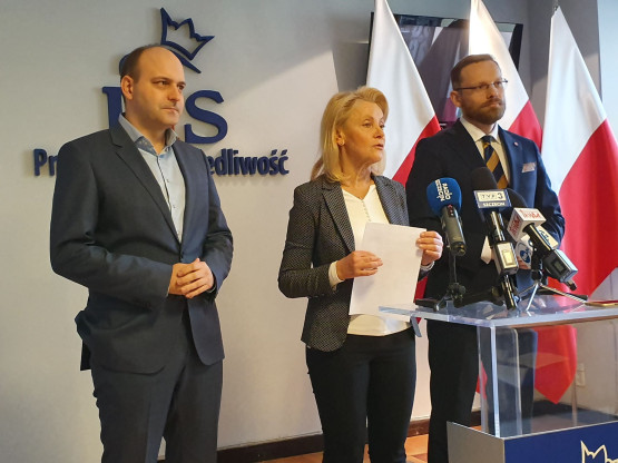 Politycy Prawa i Sprawiedliwości na piątkowej konferencji prasowej odnieśli się do apelu marszałka województwa o dofinansowanie no...