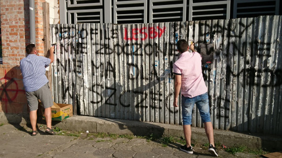 Nikt nie chciał zamalować homofobicznych napisów na budynku. Rada osiedla wyręczyła zarządcę obiektu