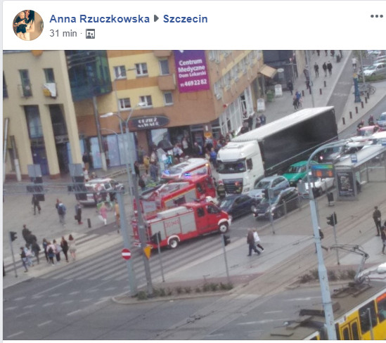 Motocyklista wyciągany spod ciężarówki. Wielkie korki w centrum Szczecina