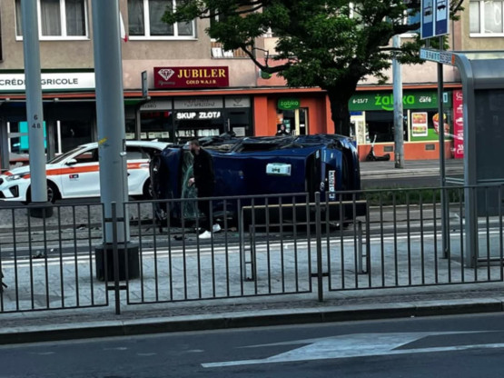 Dachowanie na placu Rodła. Kierowca przeleciał przez barierki