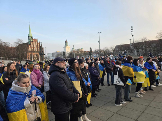 Kilkaset osób na pikiecie w trzecią rocznicę wybuchu wojny w Ukrainie. „Polacy mają wielkie, otwarte serca”