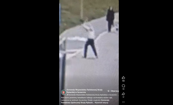 Straż rybacka w Szczecinie opublikowała nagrania z monitoringu, na których widać jak jeden z wędkarzy uderza rybą o beton. Cała sy...