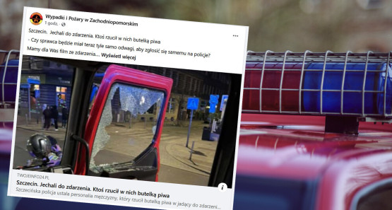 Był kompletnie pijany i znany wcześniej policji. Zatrzymano mężczyznę, który rzucił butelką w wóz strażacki