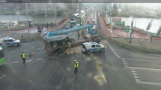 Ciężarówka zablokowała jedno z najważniejszych skrzyżowań w mieście. „Ruch na Prawobrzeże sparaliżowany”