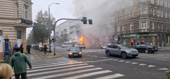 Spłonął autobus na Krzywoustego. Poważne zdarzenie w centrum miasta