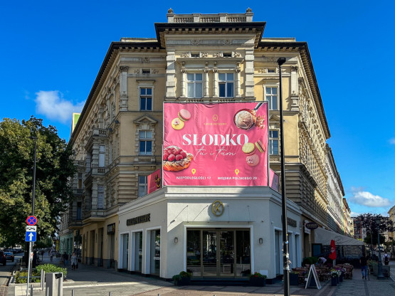 „Słodko? Dla mnie zdecydowanie zbyt gorzko”. Różowy baner zasłania neorenesansową kamienicę