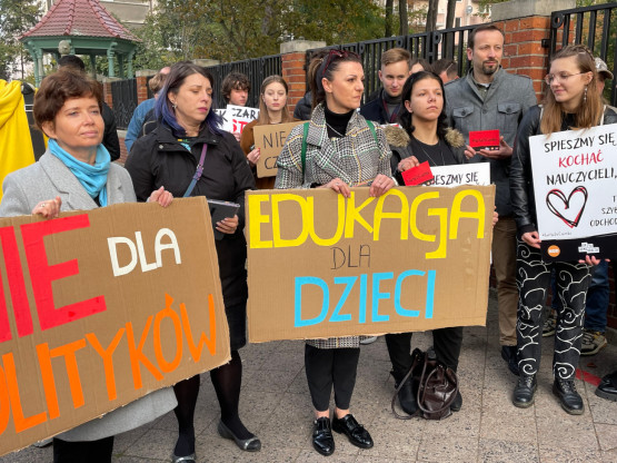 „Jaka edukacja taka demokracja”, „Chcemy edukacji, nie indoktrynacji”. „Szkoły laickiej nie katolickiej” – między innymi takie has...