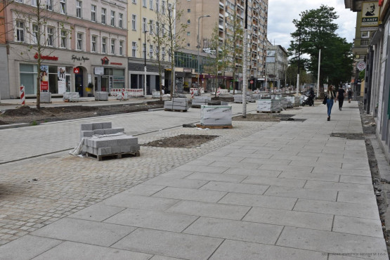 Coraz więcej kostki brukowej i płyt chodnikowych widać na modernizowanym śródmiejskim fragmencie alei Wojska Polskiego. Prace powi...